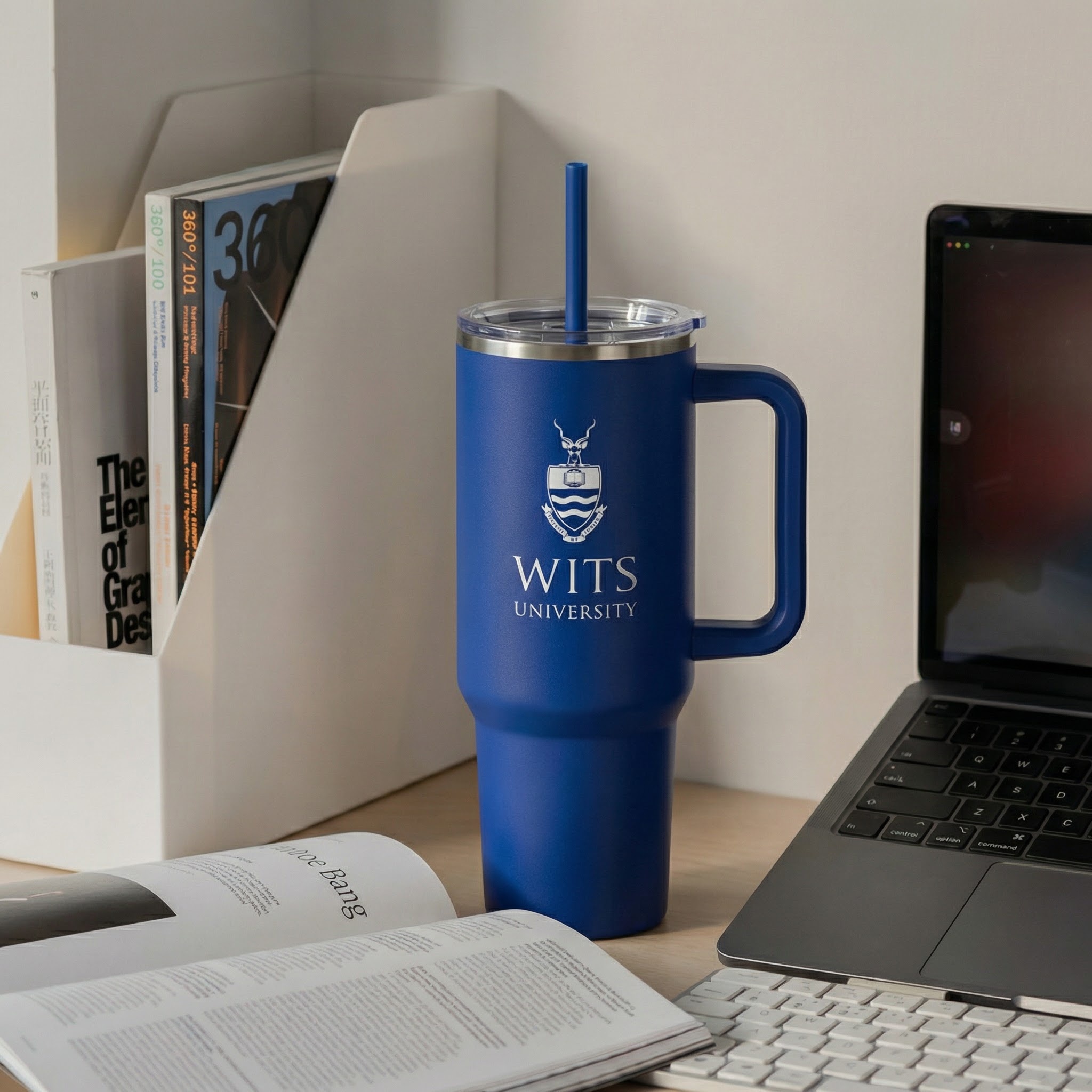Finished in a deep, classic blue with the Wits University crest prominently featured in white, this mug combines academic pride with rugged functionality. Its double-wall construction provides superior insulation to keep your beverages at the ideal temperature for longer. The design is perfected with a transparent spill-proof lid, a convenient flip-cap for sipping, and a reusable plastic straw. Despite its impressive size, the mug features a cup holder-friendly base and a sturdy, ergonomic handle for comfortable all-day use.